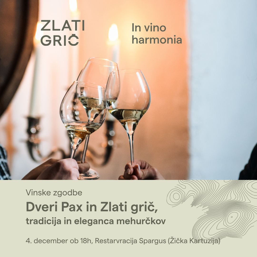 Tradicija, penine in ustvarjalni grižljaji v prazničnem decembrskem večeru. V Spargusu znova gostimo vinsko zgodbo Zlatega Griča – tokrat s peninami Dveri Pax in šampanjcem.