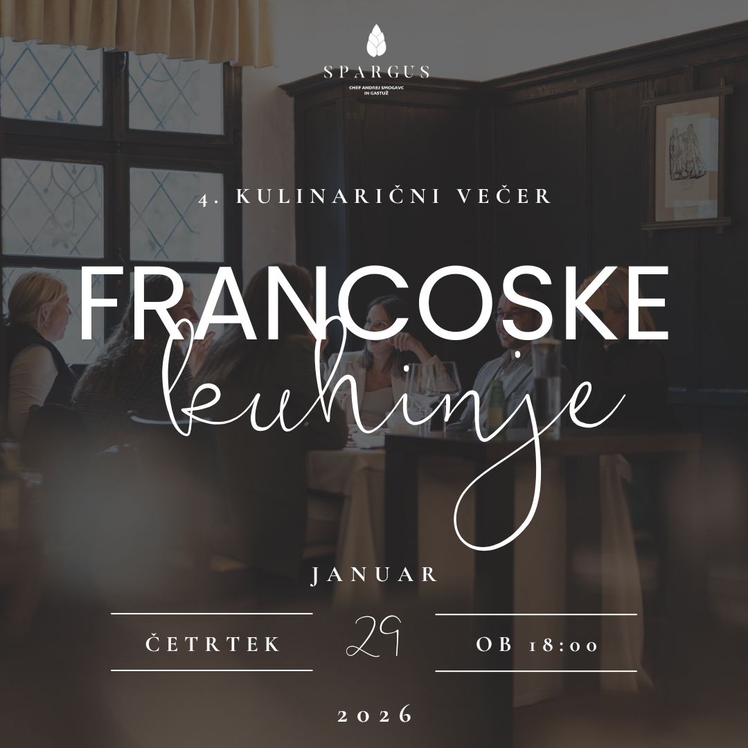 Vabljeni na 4. Francoski kulinarični večer v Spargusu – večer francoske kulinarike, izbranih vin in žive glasbe v intimnem ambientu.